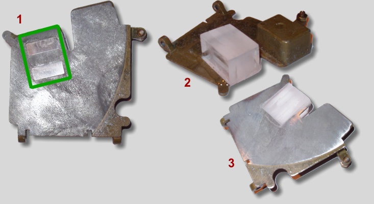 Der Magnet (1: Grün) wird mit einer Laubsäge ausgesägt. An seiner Stelle kommt ein Entsprechend grosser Block z.B. aus Kunststoff. Dieser wird mit Zweikomponenten Kleber an die Stelle des Magneten (2) geklebt. Nach der Aushärtung kann dieser noch bearbeitet werden. Die Lauffläche (3) muss eben sein und darf an der eingeklebten Stelle keine Kanten haben, damit die Münzen später gut fallen.