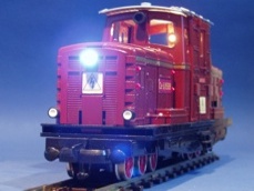 Diesellok mit entsprechendem Licht für Vor- und Rückwärtsfahrt. Gesteuert über Dioden. Kondensatoren verbessern die Fahreigenschaften (Ruckfrei bei kurzer Stromunterbrechung)