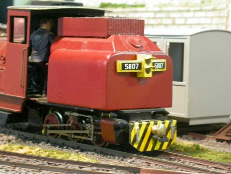 Die Einlage zeigt die originale Diesellok die zerlegt wurde um sie schmäler zu machen. Der hintere Teil wurde abgeschnitten und vorne dazu gesetzt. Einzelne Hübner Puffer in der Mitte und entgegengesetzte Harken und Ketten dienen als Kuppelung.